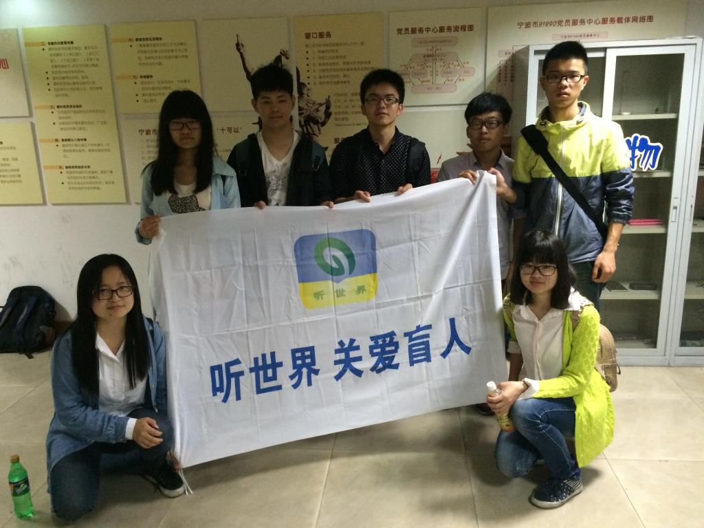 “听世界”项目组的志愿者走进了宁波市各社区,向社区居民开展宣传“听世界”公益项目和募集闲置电子产品,并将募集到的电子产品送到盲人手中,为他们送去关爱。在此次活动中,志愿者们带领盲人前往会场去欣赏一场精彩的表演,一路上,大家有说有笑,听老人讲故事、谈生活,很快便到达了目的地。虽然过程充满艰辛,但当老人们的脸上流露出会心的微笑,这就是对志愿者们最大的肯定。