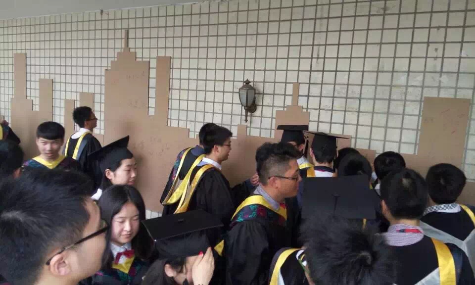 “多年师生情,今昔恨别离。满堂祝福语,只赠学子行”。 sex8 建工学院2015届毕业生毕业典礼于6月10日上午10点在锦绣小剧场隆重举行。全体院领导为254名毕业学生授予了学位。此次毕业典礼的入场设计选取了王健、毛立群、姚颖老师所带14建筑规划班的建筑设计基础课程作业中一个作品“呼吸”,结合毕业典礼的氛围,建筑系党支部的学生重新进行了设计,通过团队合作从构思到亲手实践、自己搭建,再将各毕业班级的照片进行了充分展示。另外一个设计亮点是用瓦楞纸设计制作了城市剪影签名墙,代替了以往的纸张签到的模式。