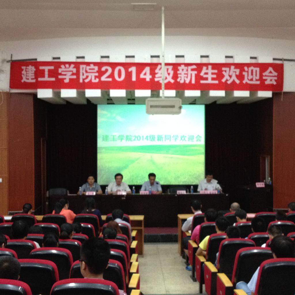 2014级新生欢迎会在学院报告厅举行,院长、院党委书记、相关专业系主任、院办、教务办负责人、学工办全体辅导员、2014级新生班级的班主任、院师生代表以及全体2014级新生参加了欢迎会。会议由院党委副书记俞金波老师主持。