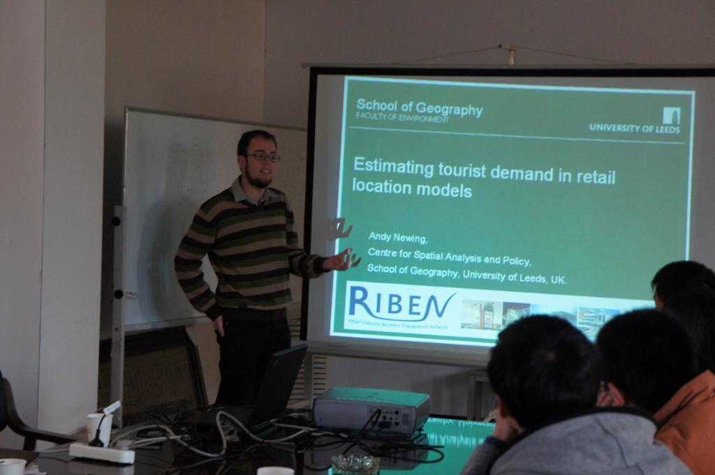学术报告会上,双方就经济地理学与GIS的连锁超市区位理论和实证数据采集、建模;高铁与区域空间结构重构,尤其是中国长三角的现实与未来;自然地理学的河流环境监测与管治,河流污染事件的一手数据获取与污染源扩散建模分析,以及中英研究生培养和中国国家留学基金委资助中国高校学生出