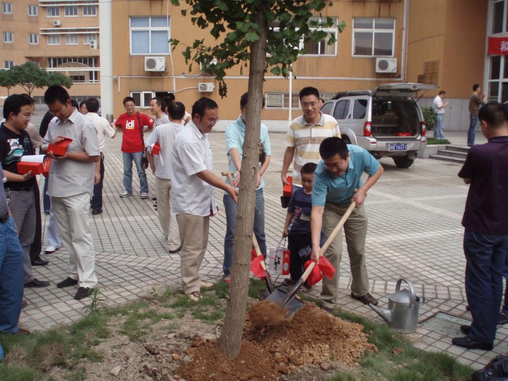 座谈结束后,校友们在学院院子内挥土种下了一棵银杏树,祝愿学校、学院办学事业蒸蒸日上。之后,还兴致勃勃地参观了校园。