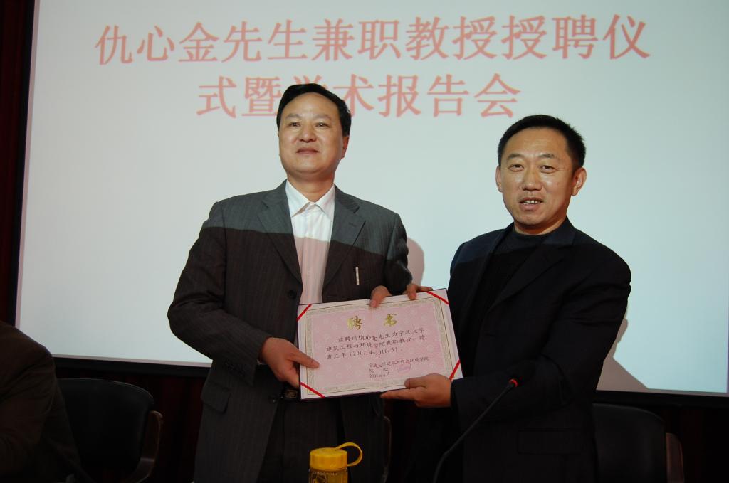 4月4日下午,民营企业家、宁波大自然新型墙材有限公司董事长兼总经理仇心金先生兼职教授授聘仪式暨个人报告会在sex8
