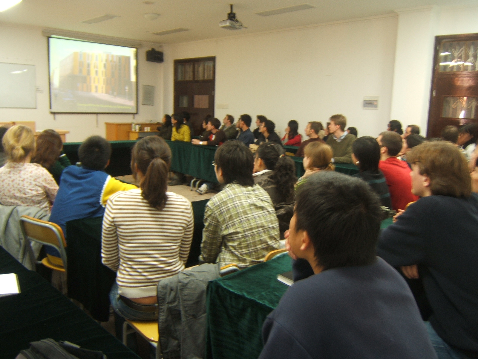 陈芳、王伟鹏两位老师用英文分别作了《中国地域建筑特色》、《中国古代建筑》的学术讲座。最后双方学生还介绍了彼此的学习状况,sex8