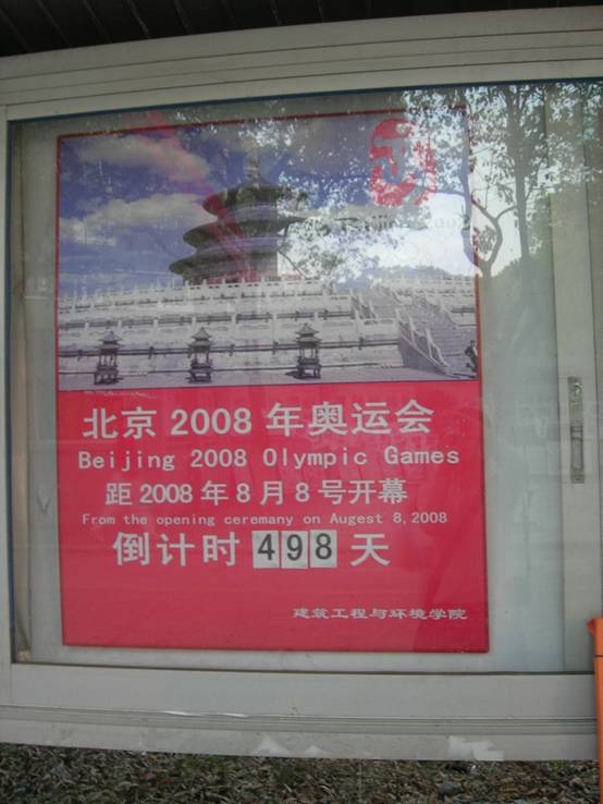 倒计时牌引来众多人的驻足观望,sex8 学子以自己的实际行动引领全体同学投入到喜迎奥运的活动中,让年轻的心,豪迈的情,助推2008北京奥运会走向成功。