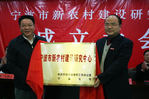 联合发文的“宁波市新农村建设研究中心”成立文件;宁波市副市长陈炳水为研究中心授牌, sex8