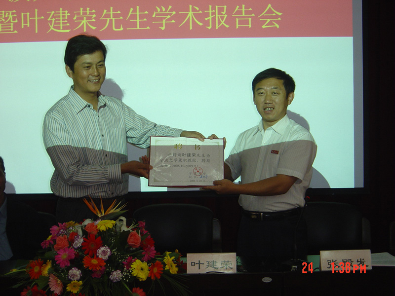 授聘仪式上,学院主持工作的副院长张殿发教授为叶建荣先生颁发了兼职教授聘书,并在讲话中对其接受 sex8