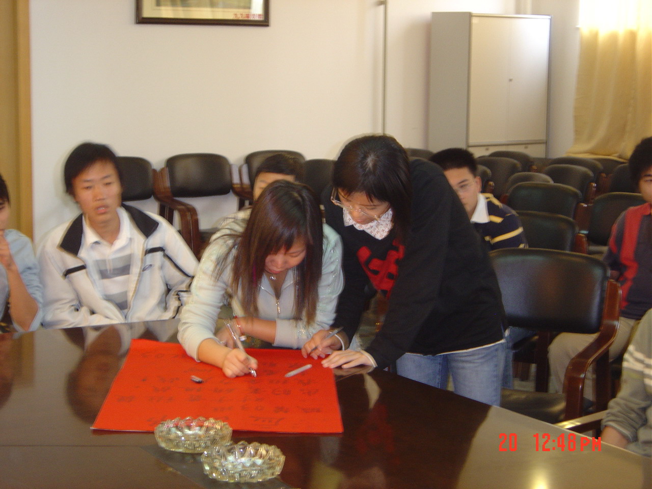 会上,该班班主任王新堂教授提出,要发扬航天精神,争创一流学风,积极应战城管03班于10月16日提出的考研挑战,并带头宣誓和签字:考研目标是报名率要达100%,考取率要达60%。
