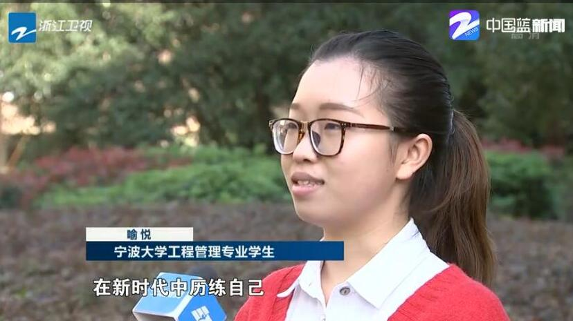 党委书记王益澄,工程管理专业学生喻悦、建筑学专业周耀荣、土木工程专业施程辉接受了《浙江新闻联播》记者的采访。喻悦说:“作为学生党员,要在新时代中历练自己,勇往前行。”