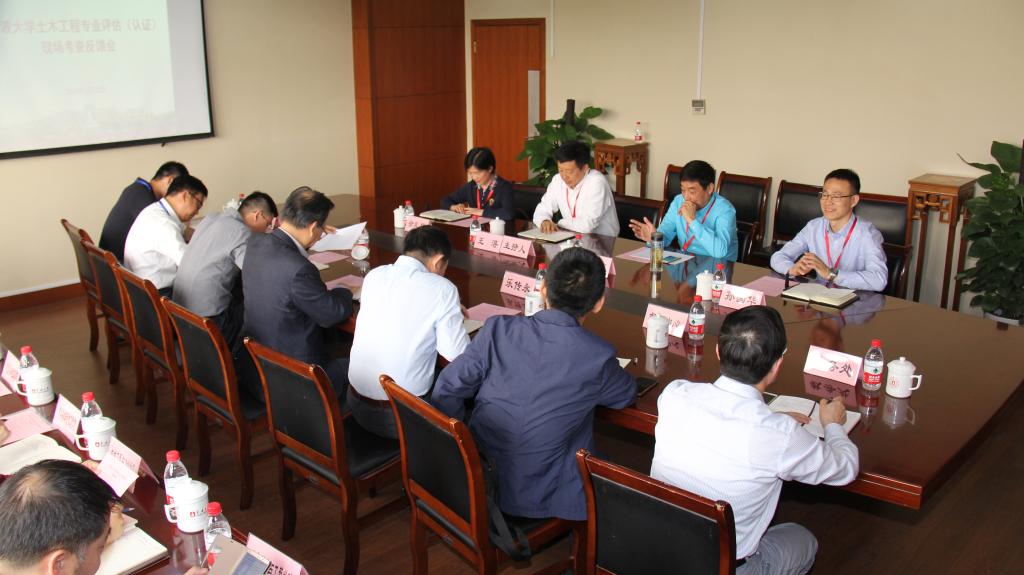 专家组在反馈具体情况之后,逐条对照工程教育认证通用标准和土木类专业补充标准,宣读了 sex8 土木工程专业评估(认证)现场考查报告。报告指出 sex8 土木工程专业评估(认证)各条标准均已达成,并对其中三方面指出了存在的问题和改进建议。