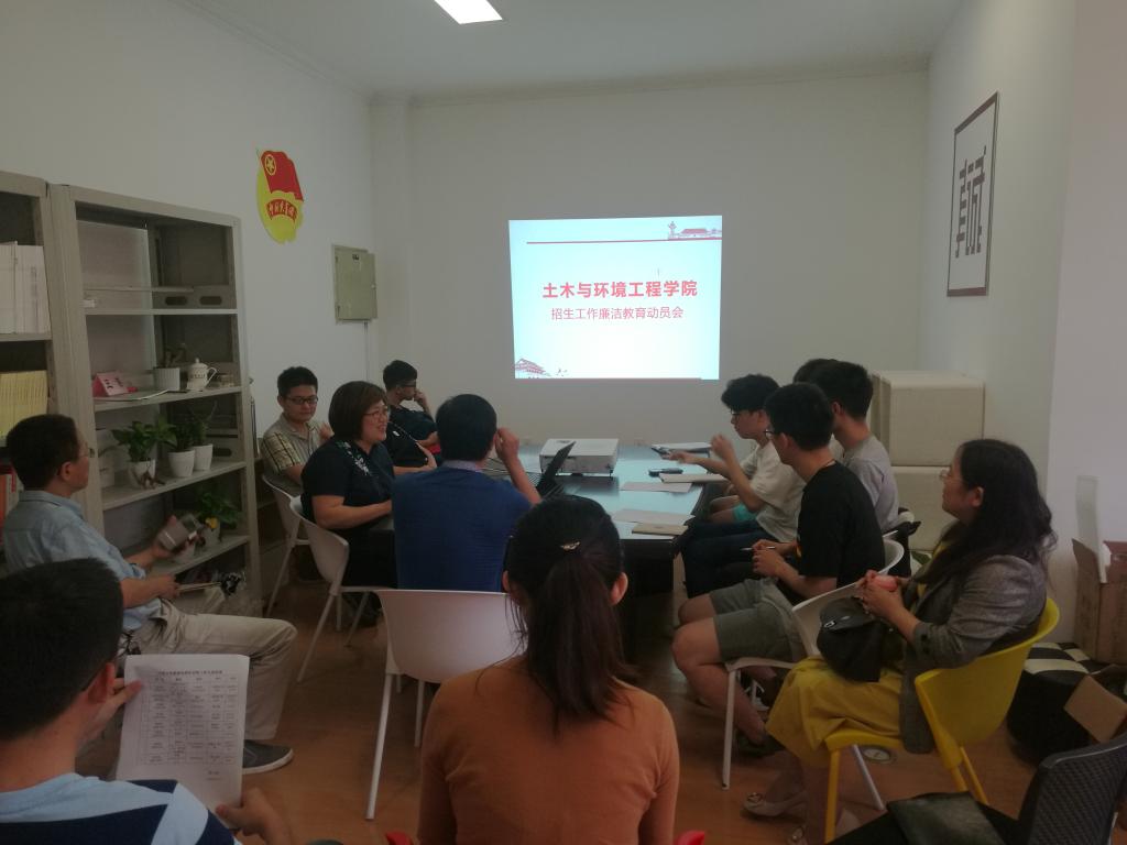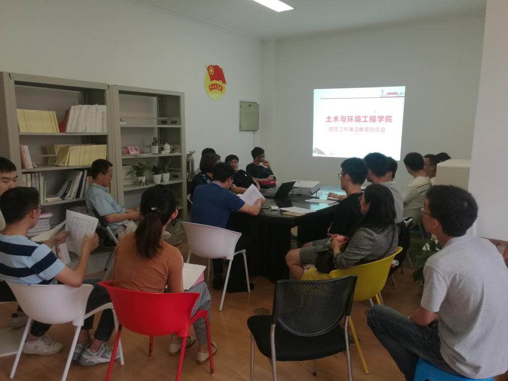 6月19日下午,土木环境学院2019招生工作廉洁教育动员会在学院205真诚图书室召开,院党委书记林奇凯老师、纪委书记汪丹老师以及负责省内省外各个小分队的老师和同学参加了动员会。