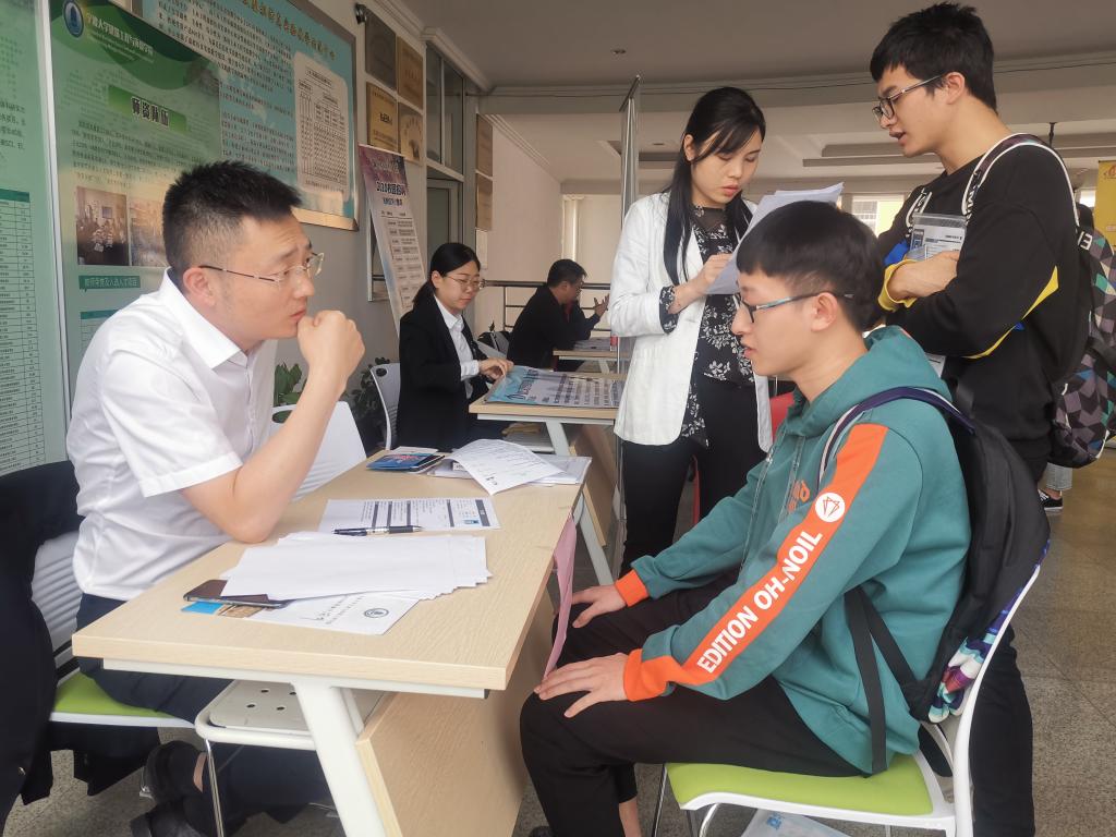 企业HR们向毕业生精简地介绍了企业情况和招聘需求,包括企业的优势、招聘的福利等内容,毕业生们利用茶歇及宣讲会后的时间,在学院布置的小型招聘场地,向意向单位投递简历并接受简短的面试。
