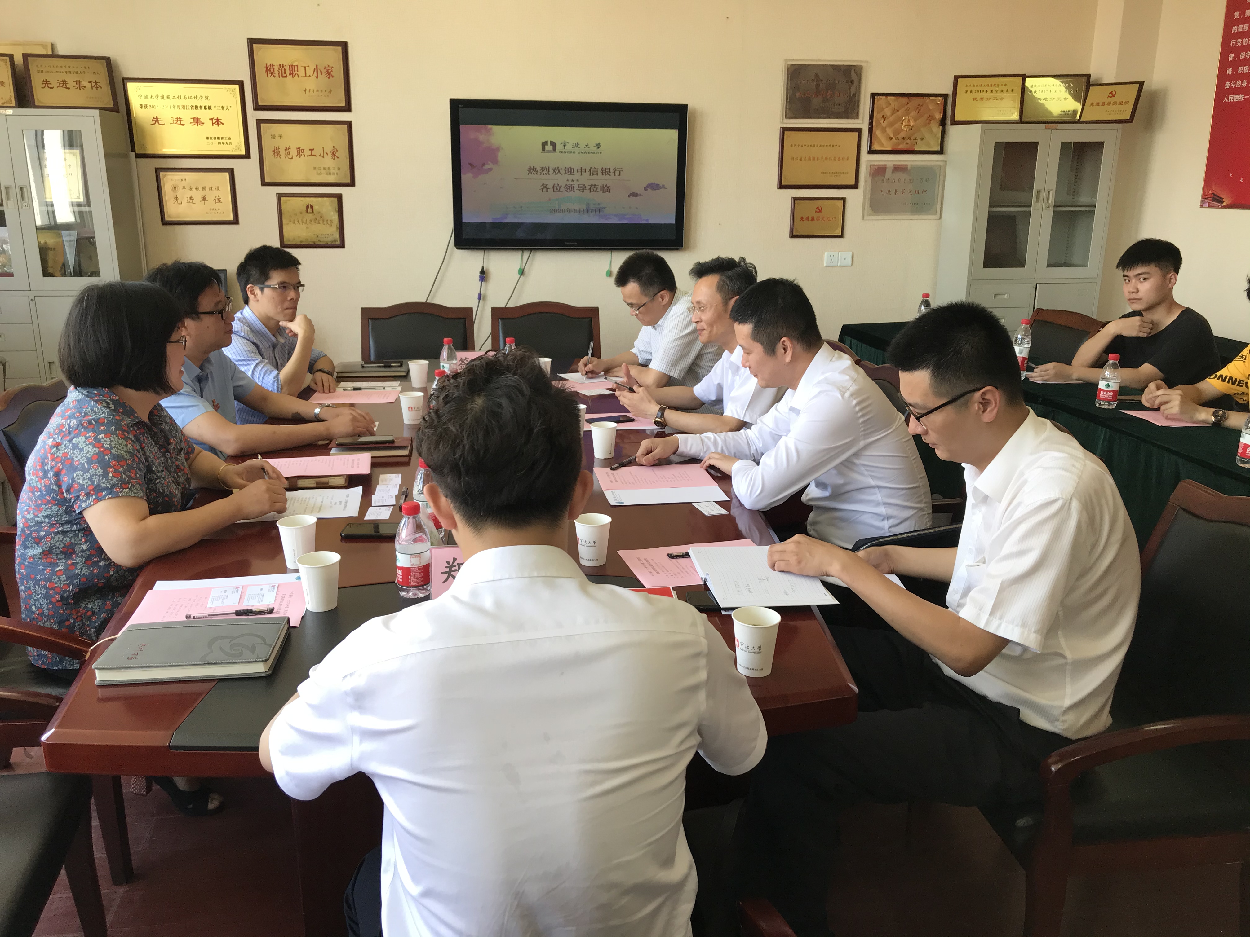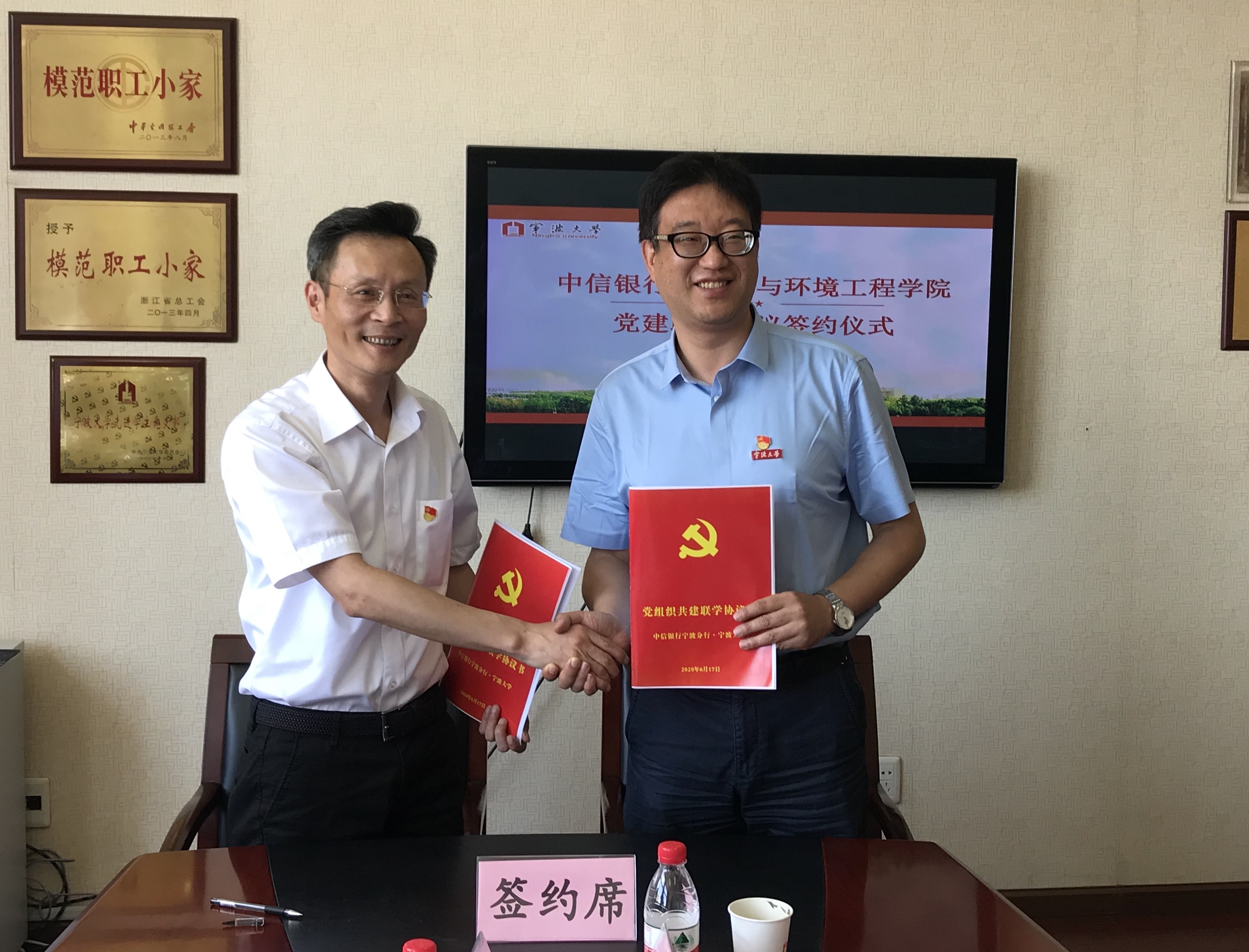 6月17日上午,sex8 与中信银行宁波分行在学院党员之家进行党建联学协议签约仪式。中信银行宁波分行工会副主席、党群工作部总经理姚小荣、高新支行行长邱泼、高新支行副行长徐钱辉,院党委书记林奇凯、院党委副书记汪丹、环境系主任余振勋、院党政办主任兼分工会副主席王海芳等出席了本次签约仪式。