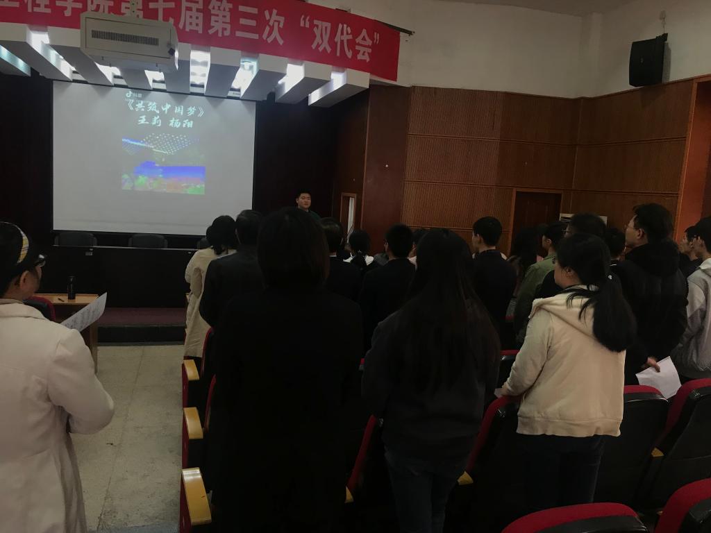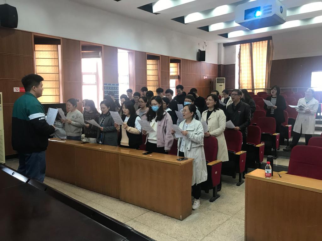 在院分工会、团委的组织下,师生们利用课余时间,以饱满的热情迎接建党100周年华诞,在学院报告厅进行师生合唱排练。sex8 党委书记林奇凯、分工会主席严晓东参与了本次排练。