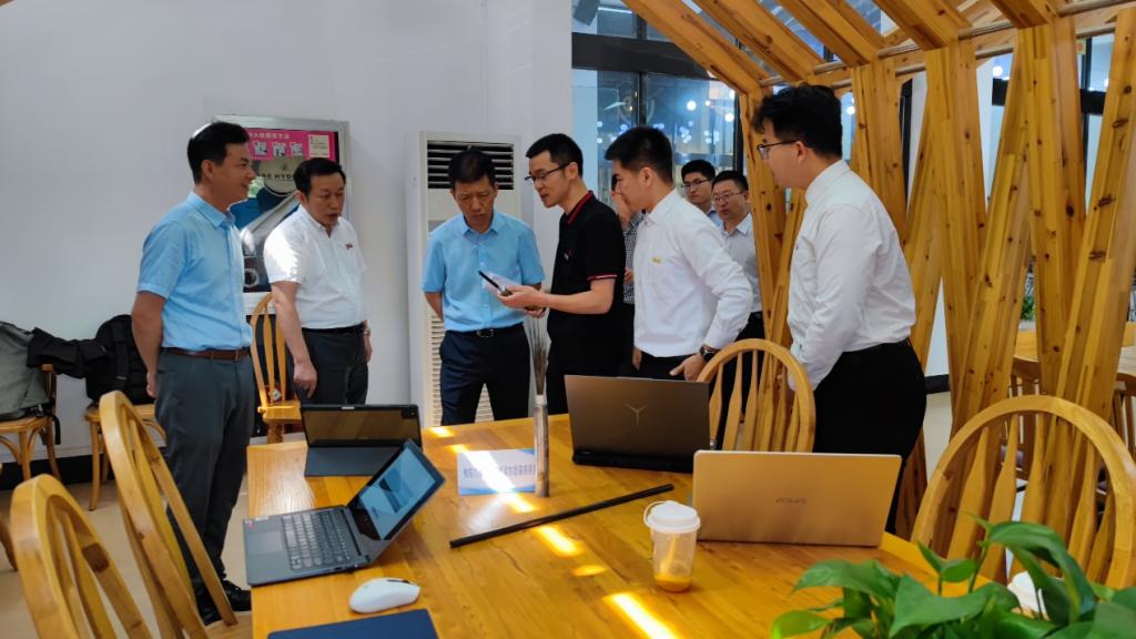 希固科技项目主要负责人向于厅长一行具体介绍了项目内容与发展前景。听取了的介绍后,领导们对该项目给予了高度肯定,与团队指导老师诸葛萍以及团队主要成员进行了深入交流,提出了一系列建设性意见与发展希冀,鼓励项目成员继续积极探索挖掘,让具备丰富价值的成果进一步助推城市建设,实现更深层次的发展。