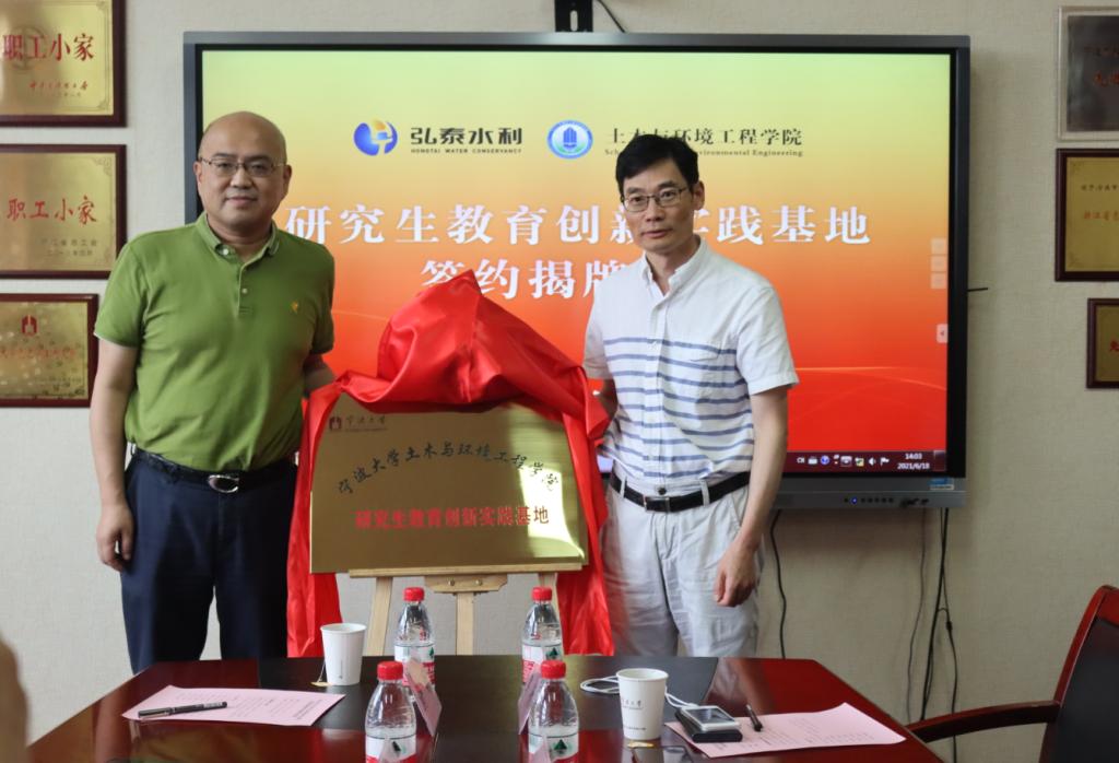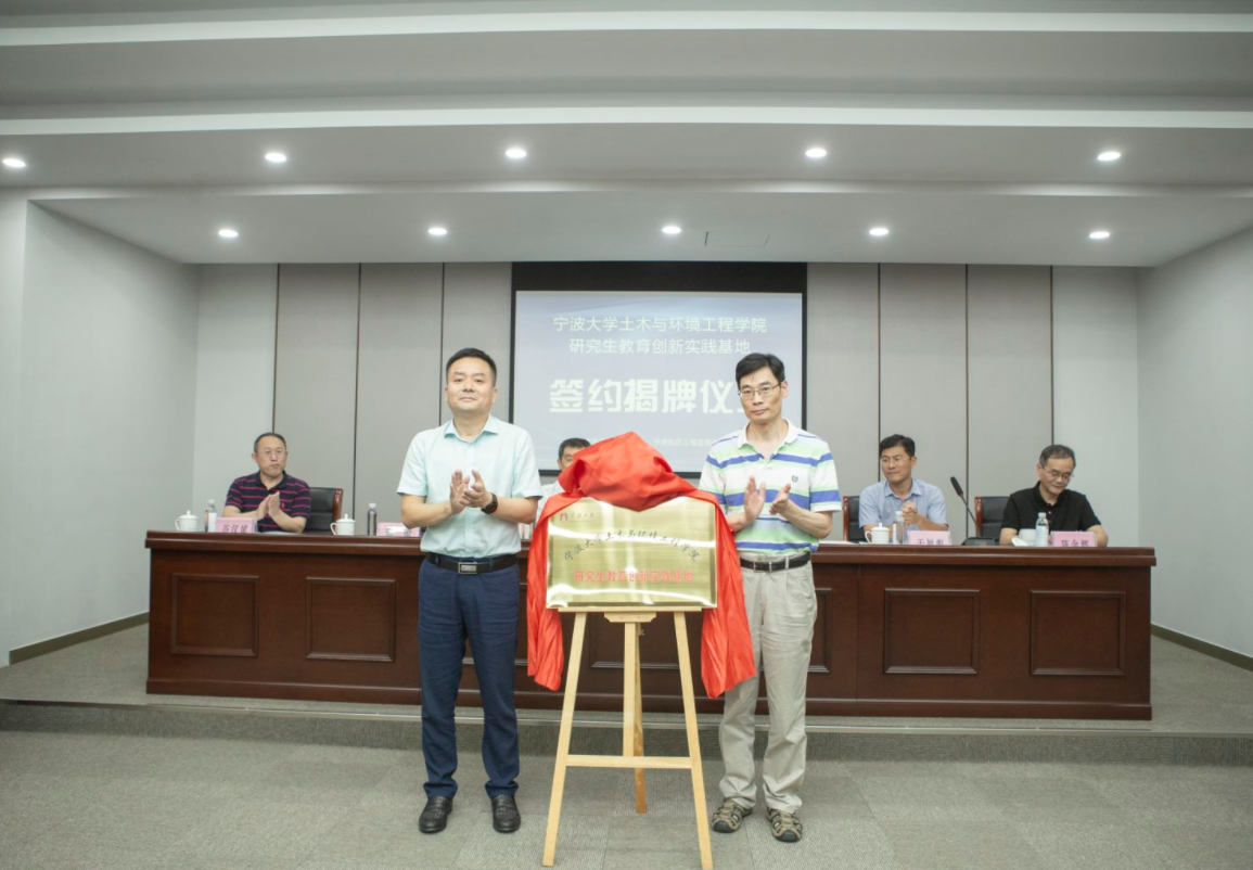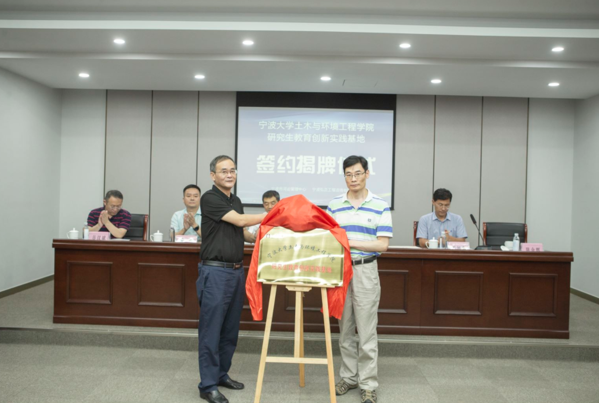 6月18日下午, sex8 土木与环境工程学院研究生教育创新实践基地揭牌仪式在学院303会议室举行。宁波弘泰水利信息科技有限公司董事长朱孟业、 sex8 海洋工程研究院院长朱志伟院士、 sex8 土木与环境工程学院院长助理诸葛萍等近20余名代表出席会议。揭牌仪式由海工院教授谷汉斌主持。会上,朱志伟院士与宁波弘泰水利信息科技有限公司董事长朱孟业就“ sex8 土木与环境工程学院研究生教育创新实践基地”签约并揭牌。朱孟业董事长对宁波弘泰水利信息科技有限公司进行介绍,对专业硕士培养工作进行规划展望。宁大土木环境学院院长助理诸葛萍对学院情况进行介绍,对宁波弘泰水利信息科技有限公司领导专家给予的支持表示衷心的感谢。随后,与会代表参观了土木与环境工程学院及海洋工程研究院的实验中心。