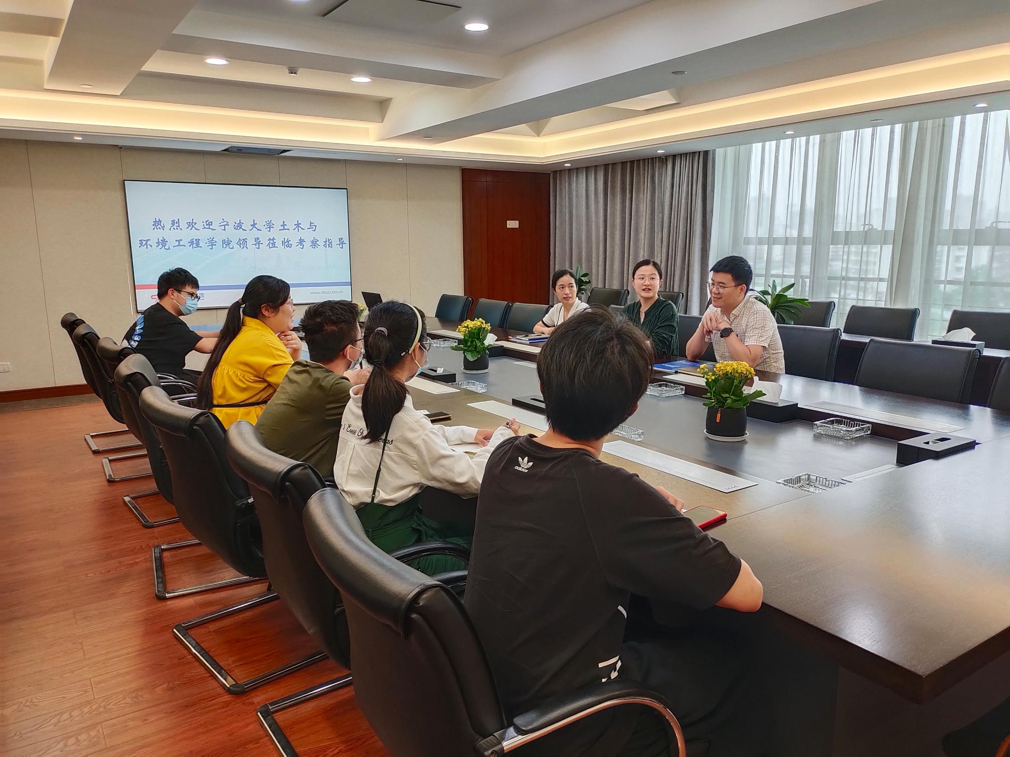 为进一步推动校企合作,了解优秀校友的职场发展和毕业生就业情况,并对接开展大学生暑期社会实践活动,由院党委副书记朱剑琼带队、sex8 师生一行六人,于6月10日下午赴宁波市政工程建设集团股份有限公司开展了交流座谈。