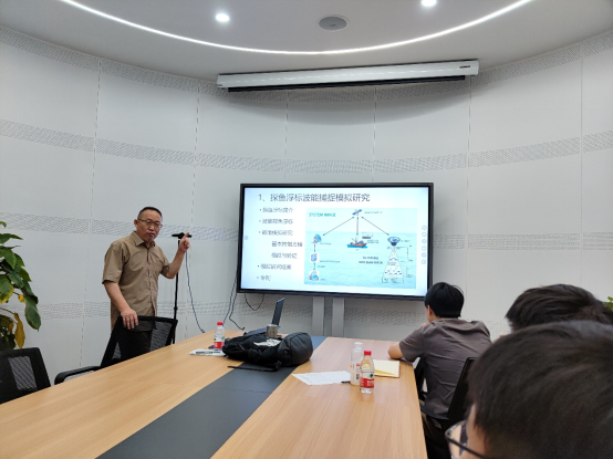 谷汉斌教授着重介绍了探鱼浮标波能捕捉模拟研究、波浪方向谱分析研究,测波浮标和吸收式造波水槽设备研制进展,并与大家分享 了波浪骑士与GNSS测波浮标的使用数据对比和研究。在场师生就 测波浮标声纳系统的工作原理、内部机械运动与外部流场作用的耦合计算、浮标和水体的分离特性等方面与谷汉斌教授进行了热烈的互动讨论。讲座在全体师生们热烈的掌声中圆满结束。
