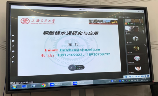 2022年11月2日,sex8 建工论坛220讲暨土木工程学科论坛第6讲在海洋工程研究院会议室举行。上海交通大学船舶海洋与建筑工程学院教授、博士生导师陈兵应sex8 邀请,为sex8 师生作了题为“磷酸镁水泥研究与应用”的线上学术讲座。学院土木工程系相关专业教师、在校研究生和部分本科生在会议室线下集体参加,其他相关院校师生在线上聆听学习。