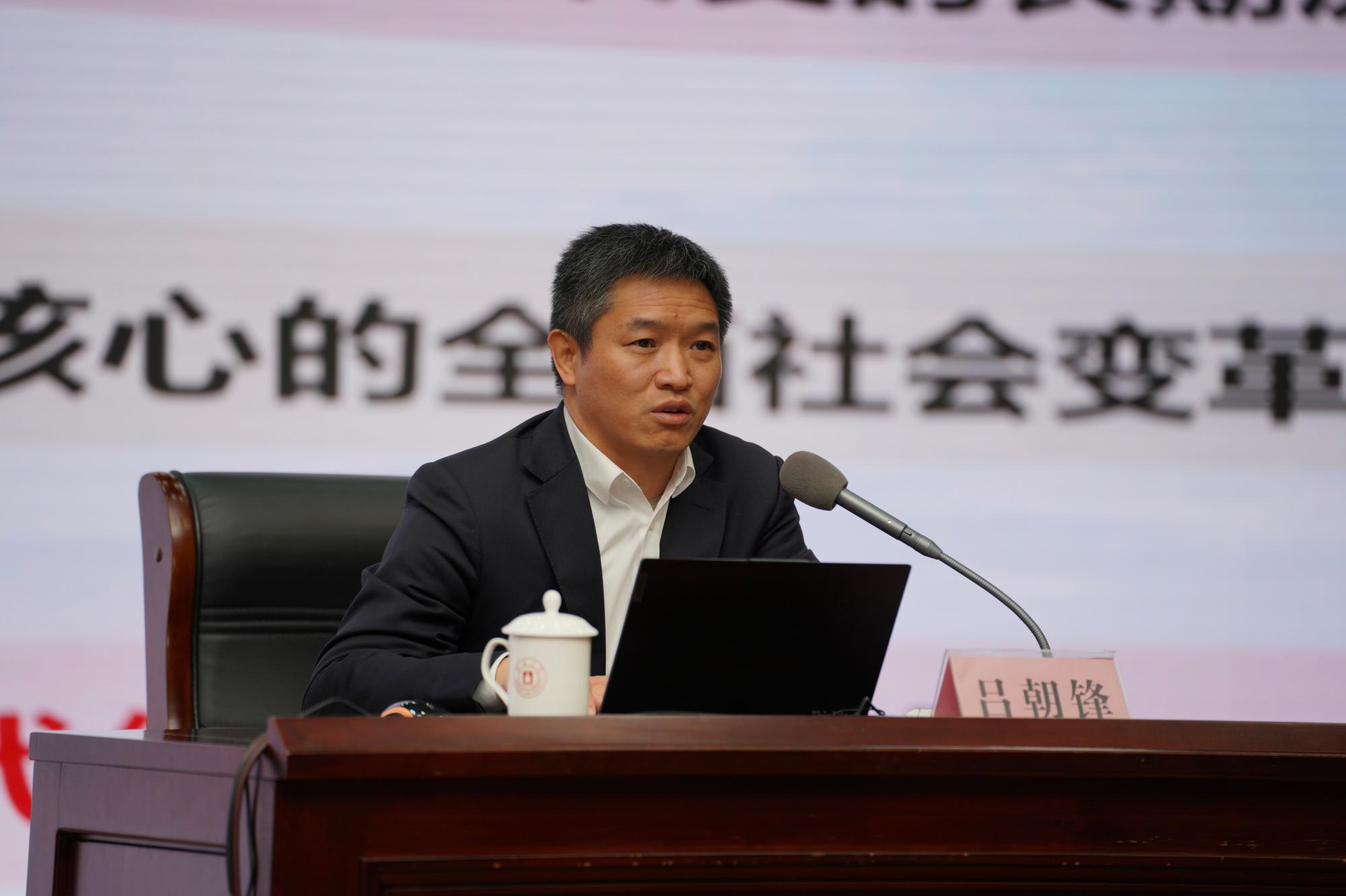 吕朝锋深刻阐述了党的二十大的重大意义,并通过大量的数据、实例以及国内外求学、访学的亲身经历,客观、科学地分析了当前国内外形势以及潜在机遇。他强调,青年是推动人类社会发展的生力军,是推动中华民族进步的源泉,是实现中华民族伟大复兴的先锋力量。吕朝锋循循善诱、谆谆教导广大宁大青年师生,要心怀宁大,与逆袭的年轻宁大一道,踔厉奋发、勇毅前行,积极秉承“实事求是、经世致用”的校训精神,做一名敢于追梦的宁大人。