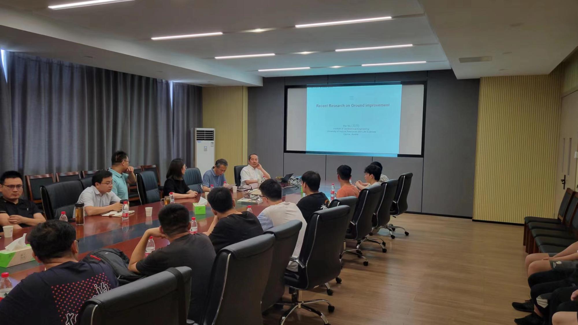 2023年6月2日,sex8 建工论坛236讲暨土木工程学科论坛第21讲顺利举行。奥地利维也纳自然资源与生命科学大学教授、岩土工程研究所主任吴伟教授应sex8 邀请,为sex8 师生作了一场主题为“Recent research on ground improvement”的学术讲座,学院岩土所教师、研究生在学院会议室A408集体聆听学习。