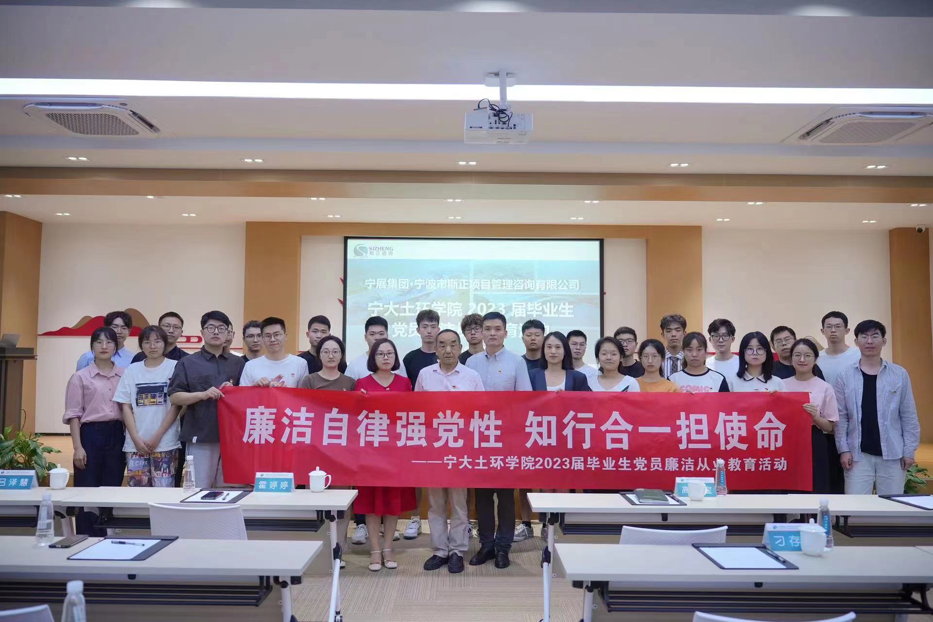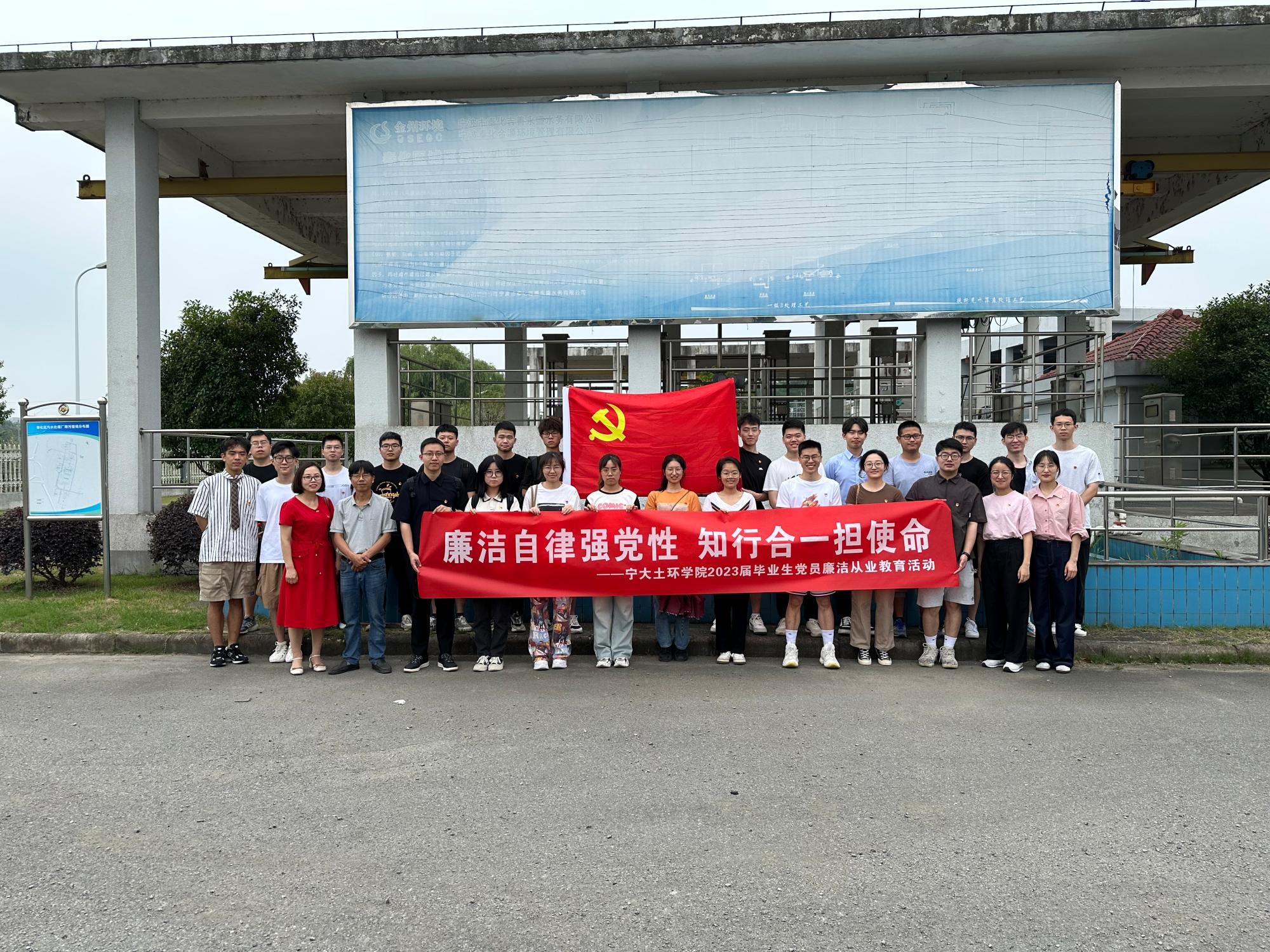 6月16日, sex8 党委、纪委组织土木系、环境系30余名2023届毕业生党员代表、教师党员代表赴宁波市斯正项目管理咨询有限公司、奉化污水处理厂,开展“廉洁自律强党性,知行合一担使命”主题教育暨廉洁从业教育活动。