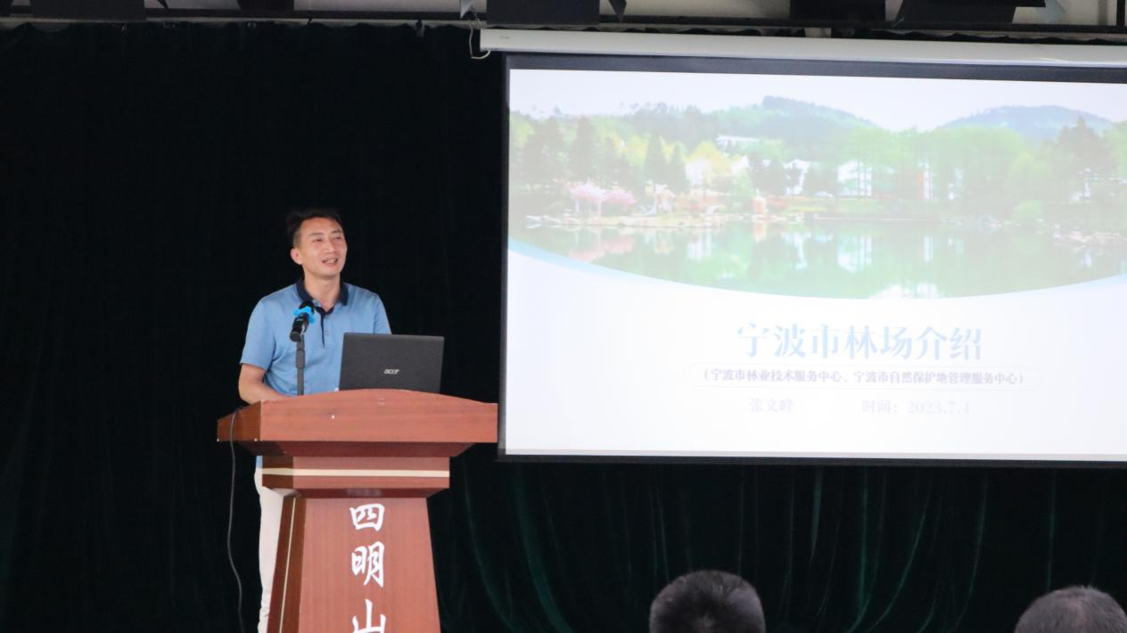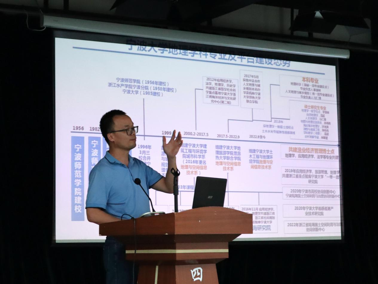 sex8 负责人从地理系学科发展角度对 sex8 地理学科专业及平台建设做了介绍,展示了地理科学专业培养特色、专业建设成果、以及在四明山区开展教学、科研的经历及成果,并强调四明山区宝贵的自然资源可以为教学、教研提供平台,希望借此次契机促进双方共同发展。