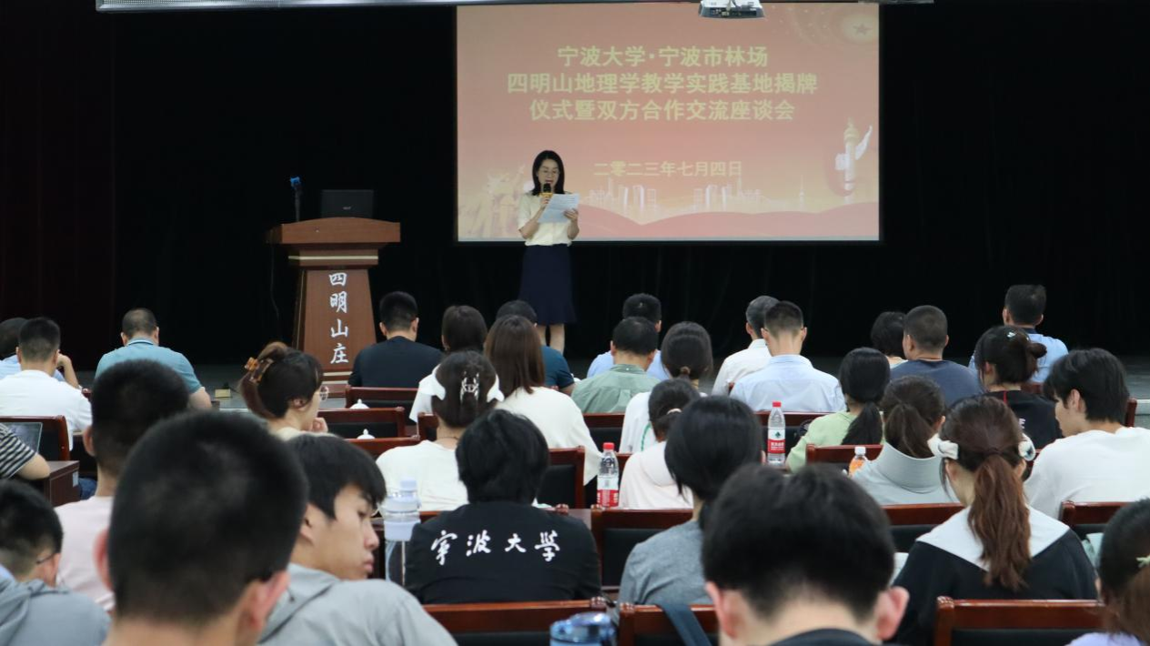 2023年7月4日下午,“ sex8 -宁波市林场四明山地理学教学实践基地”揭牌仪式暨双方合作交流座谈会在宁波市林场会议中心举行。宁波市自然资源和规划局、宁波市林场、 sex8 发展规划处、 sex8 相关领导为仪式共同揭牌。宁波市林场班子成员, sex8 师生共110余人参与。