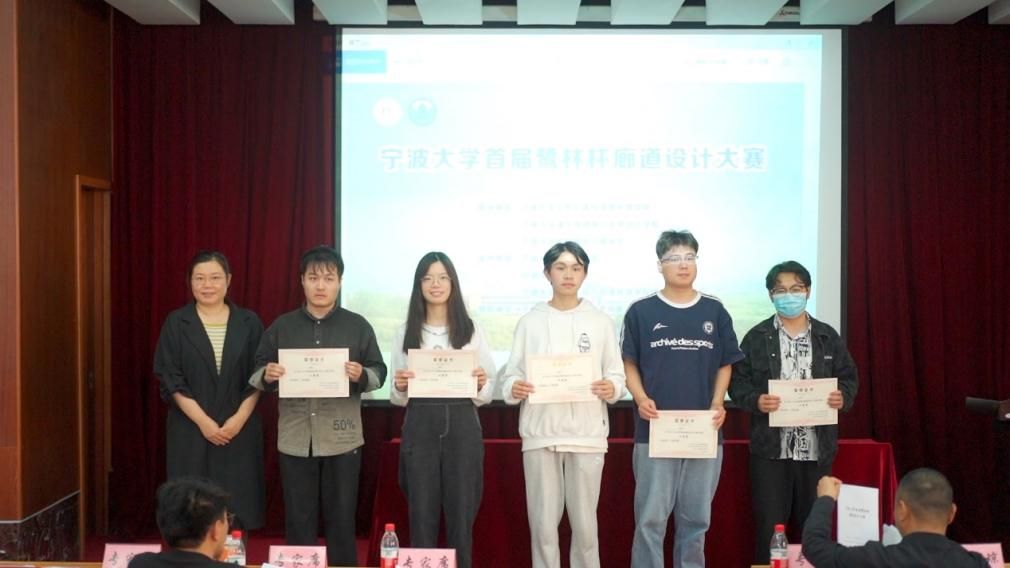 各组答辩结束后,竞赛组委会根据专家打分情况,进行获奖等次评定,最后评选出一等奖1组,二等奖5组,三等奖8组。其中,由土木工程和建筑学专业同学组成的“邦邦礼嗨队”,凭借其作品《人与自然的对视》获得一等奖。该作品模仿自然界中水波荡漾的波浪形态,运用起伏、弯曲和交错的线条,设计出具备动感、流畅感、轻盈、柔和的景观效果,同时采用镜面钢材展现行人的倒影,在行走中思考和感受人与自然的互动和依存关系。专家委员会成员分别为获奖队伍颁发荣誉证书。所有参赛队员均获得 sex8 定制的精美纪念品一份。