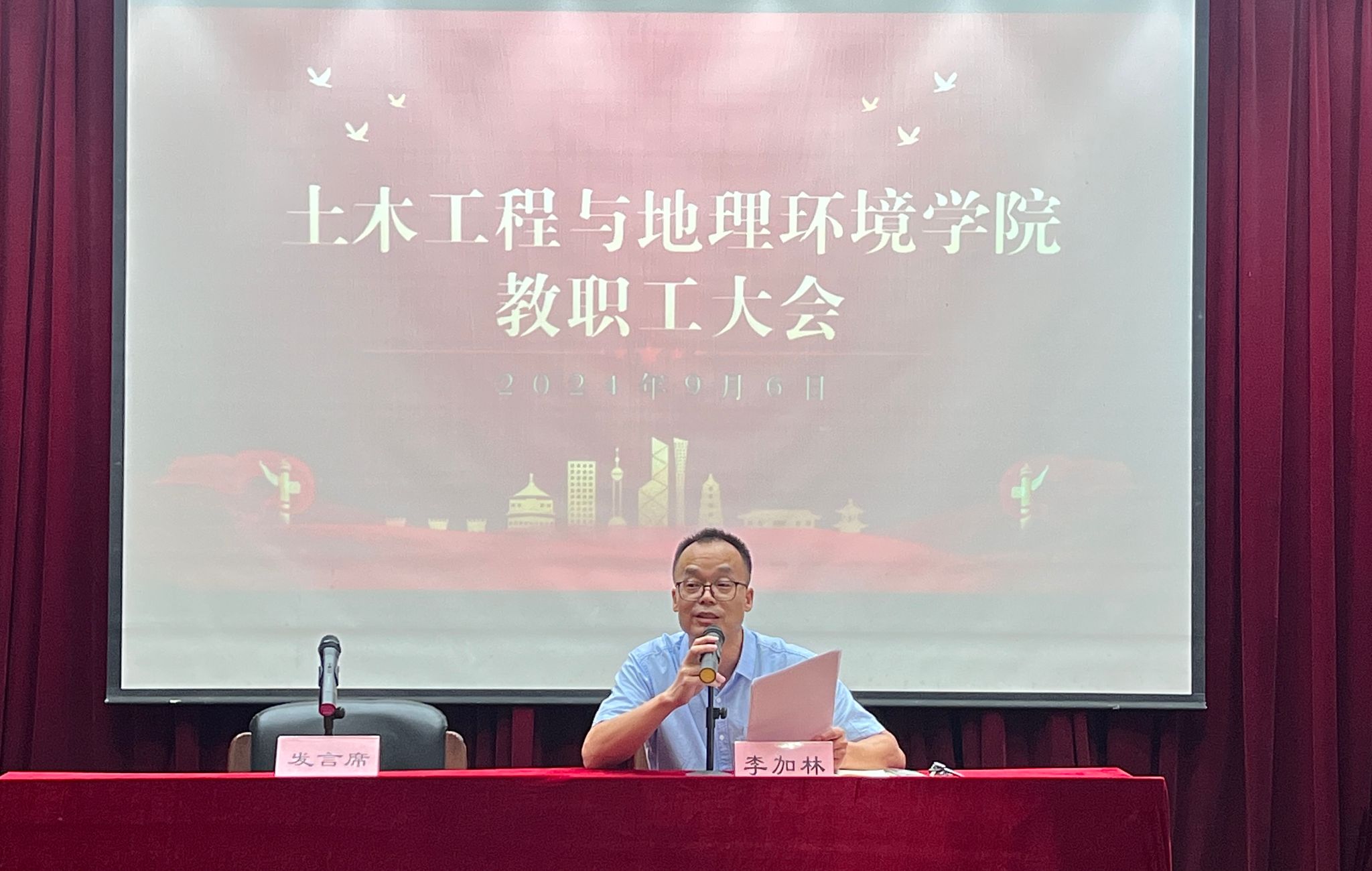 李加林首先介绍了7位近期新到岗的教师,并对他们的到来表示热烈的欢迎。随后,学院各分管领导先后就新学期学生工作、教学工作、基金申报、专业认证、研究生工作、科研与地方服务等进行了统一部署。