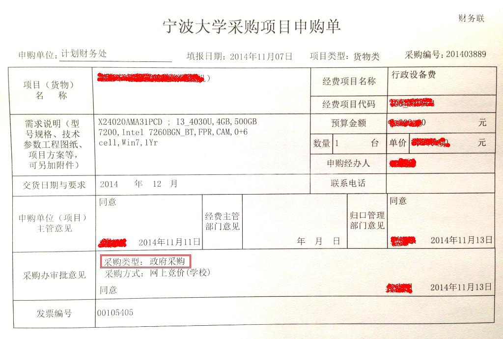 物品和服务采购支出和工程采购支出只填报批复采购类型(不是采购方式)为“政府采购”的项目,建议根据采购办审批的申购单进行填报(见下图)。