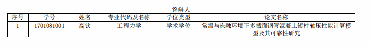 1 | 1801081015 | 张家亮 | 工程力学 | 学术学位 | 李玉顺 | 钢-竹组合梁柱耗能节点及框架结构抗震性能研究 |