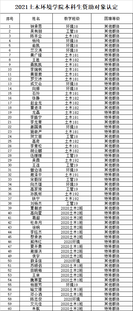 关于本科生资助对象认定结果的公示