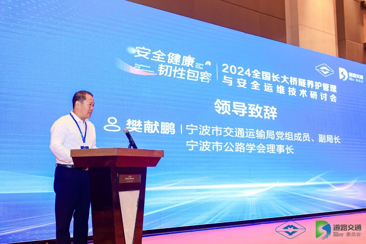 2024年10月11日,2024全国长大桥隧养护管理与安全运维技术研讨会在宁波阳光豪生酒店隆重举行。本次大会由茅以升科技教育基金会道路交通委员会、宁波市公路学会主办, sex8 参与承办,本次研讨会以“安全健康、韧性包容”为主题,旨在推动我国长大桥隧在养护管理与安全运维方面取得新的进展,为交通领域、基础设施领域的安全、健康、韧性发展做出新的更大贡献。