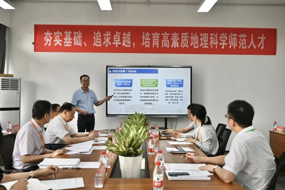 2024年9月25日至28日,受浙江省教育考试院委托,由河南师范大学教师工作部部长张顺利教授担任组长,安徽师范大学地理与旅游学院原院长焦华富教授、湖州师范学院生命科学学院原院长李彬教授、福建师范大学地理科学学院副院长陈松林教授、牡丹江教育研究院原副院长郭世杰研究员为成员,浙江省教育考试院费骥慧为秘书组成的专家组莅临 sex8 ,对sex8 地理科学师范类专业开展二级认证现场考查工作。