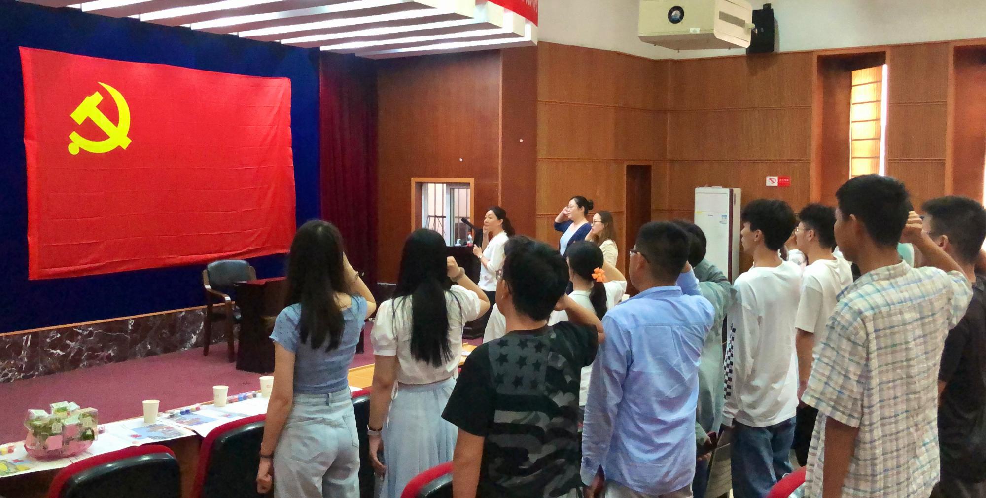 “我志愿加入中国共产党......”活动开始,全体预备党员在学院党委书记孔晓虹的带领下,高举右拳,面向鲜红党旗庄严宣誓,声音洪亮、铿锵有力