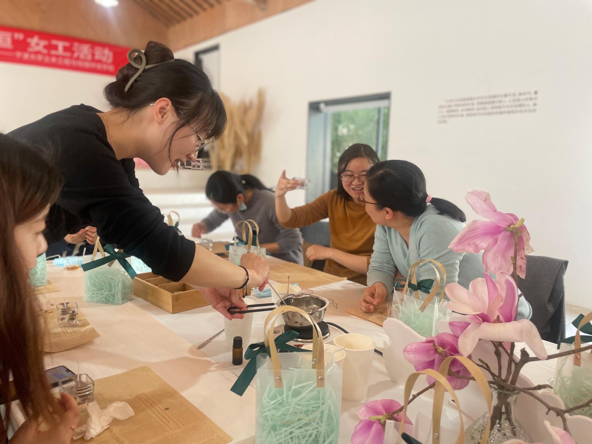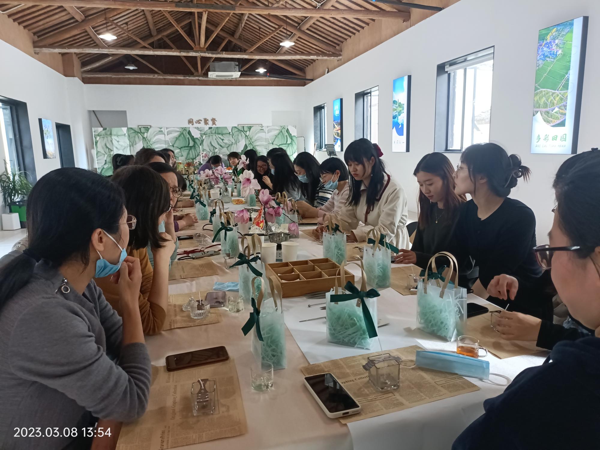 在这乍暖还寒的初春,3月8日下午,为充分展现女教工的巾帼风采,进一步提升女教工的审美意识和丰富女教工业余生活, sex8 分工会举办了“春日暖香,美丽永恒”手作香薰蜡烛女工活动,院党委副书记朱剑琼以及女教工共三十余名参加。