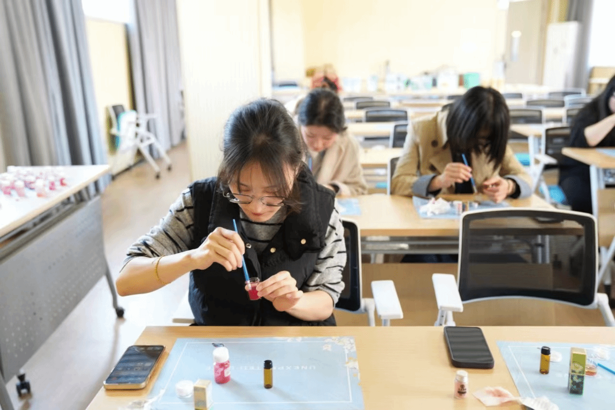 把口红彩妆这一日常事物通过手作的方式呈现出来带给热爱美学、热爱生活的教职工们,在广大老师们的积极参与下,本次活动收到了诸多好评,老师们都通过自己的亲身践行让艺术之美回归到生活本初,更收获了好好爱自己、装扮自己的悦己之心。