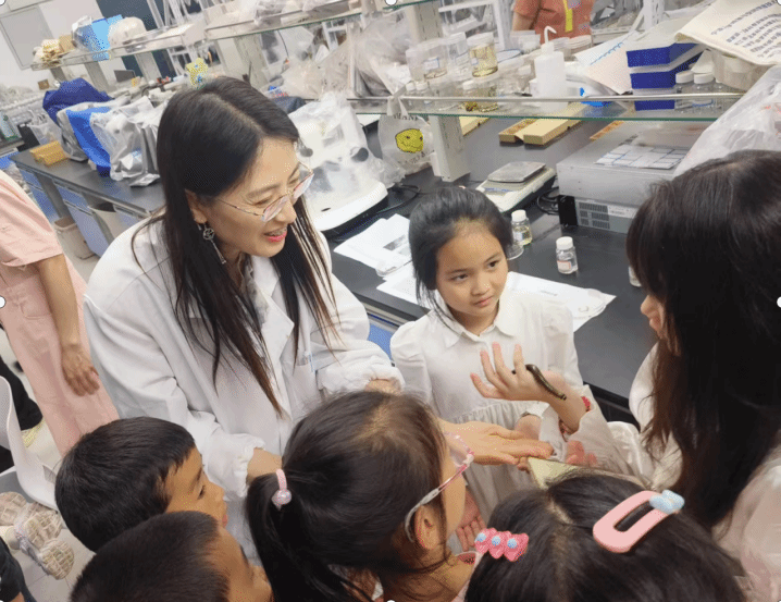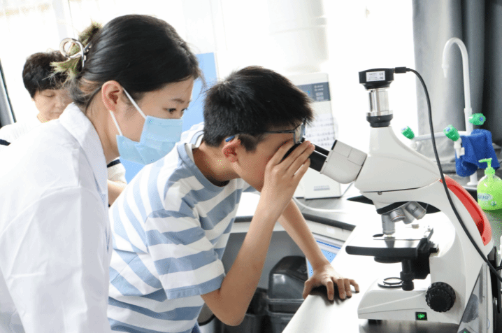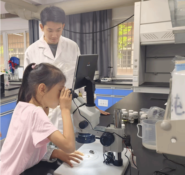 吴乃成老师课题组给孩子们展示了显微镜下的水生世界五彩斑斓,小朋友们惊叹于水滴中竟藏有如此多的生命。