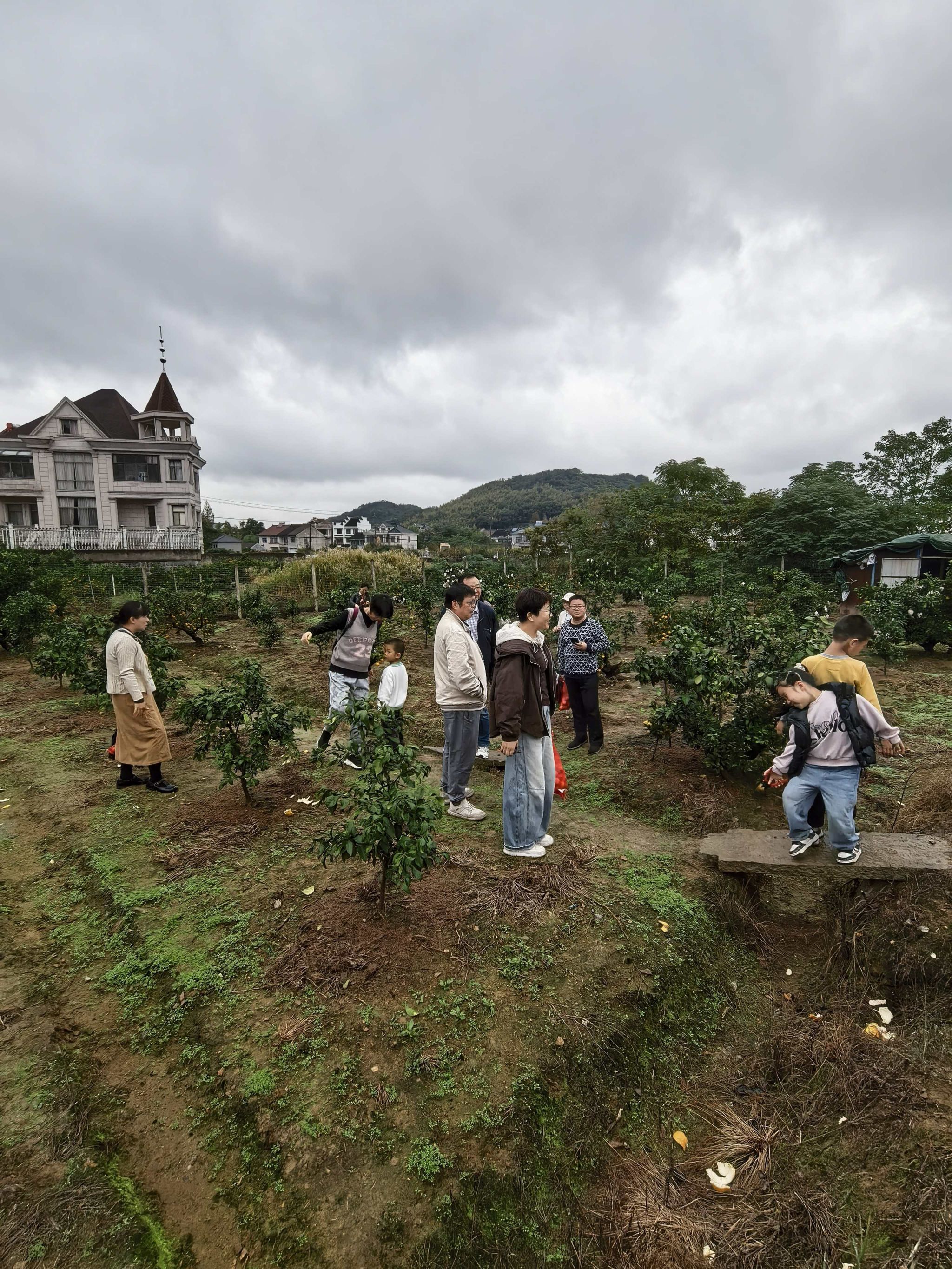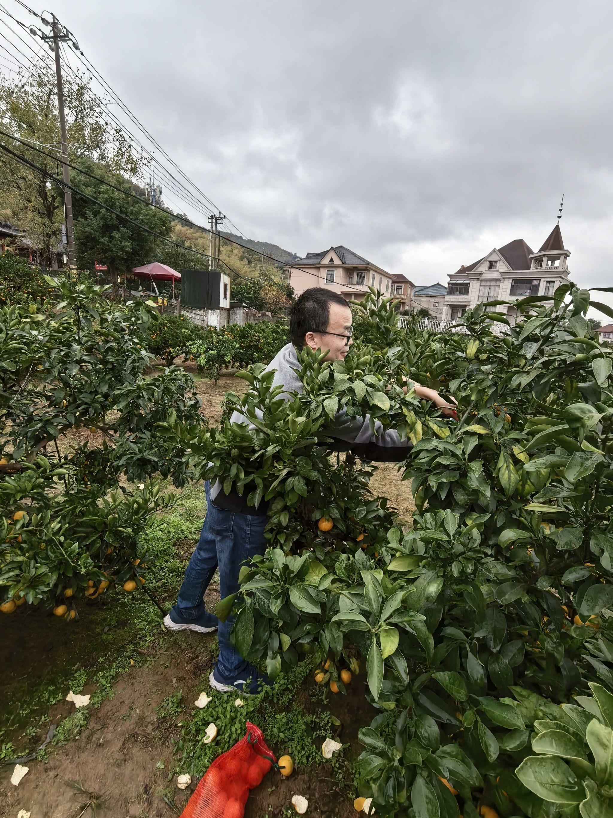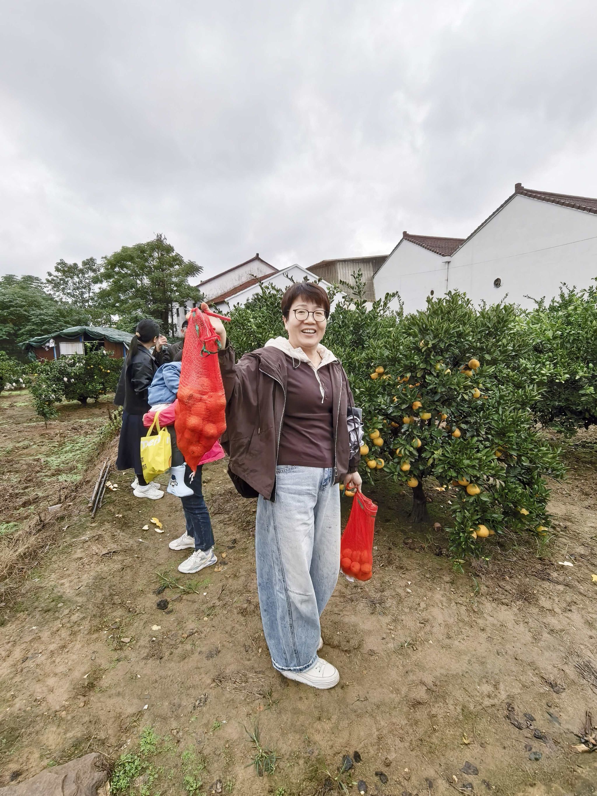 午后,队伍转场至鸣鹤山脚下的生态橘园。金灿灿的橘子挂满枝头,果香四溢。在果农指导下,教职工们领取采橘工具,开启“欢乐采摘”模式。老师们自发组成“互助小组”,高个子的负责摘取高处果实,细心的负责筛选装箱;青年教师则与资深教授搭档,交流采摘技巧的同时分享教学心得。