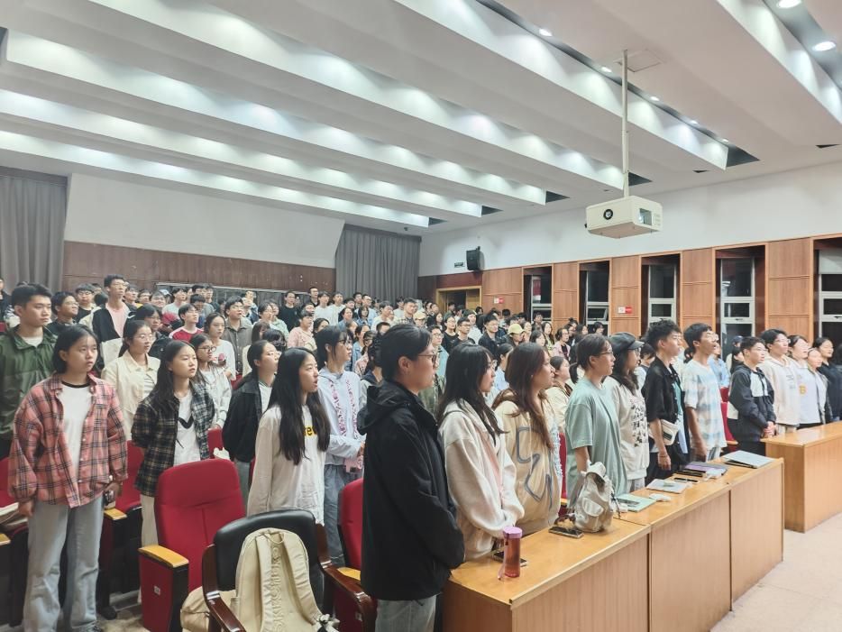 最后,全体成员起立唱响《 sex8 校歌》。正如歌词“我们要在风雨中雕琢成玉,我们要在烈火中百炼成钢······”,相信在此次团课过后,同学们将会发挥团员的先锋模范作用,在未来的团组织建设中发光发热。至此,土环学院2024级新生团课圆满落幕。