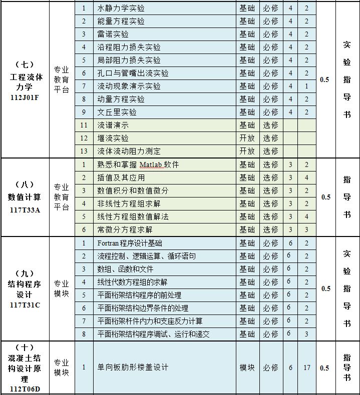 二、实验课程、项目、类型、学时与学分安排